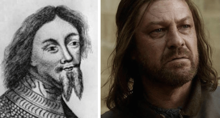 Displeased by Protector Richard’s accusations and powerful role in the kingdom, Margaret of Anjou had Richard dismissed from office (picture Ned slamming his Hand of the King pin down on the table). Former Protector Richard was riled by the thought of this Queen dismissing loyal servants in order to put her bastard on the throne and raised an army against her. Richard and the Yorks ultimately routed Margaret’s forces, capturing the throne for themselves. Sadly, Richard did not survive to see it. He died in battle, and his head was placed on a spike atop the castle walls. His eldest surviving son would go on to become king in his place.