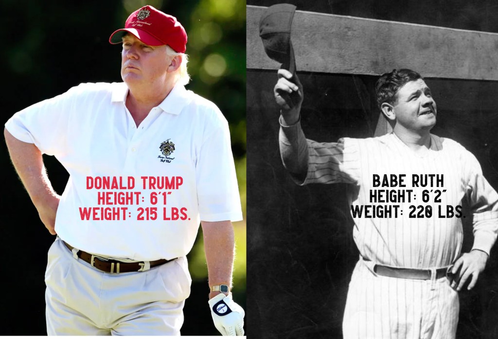 First, let’s consider his height. It’s up for debate, even by Trump. His arrest booking and White House medical reports claim he is 6’3″. His driver’s license brings him down to 6’2″. But his co-defendants’ statements and photo comparisons against other presidents bring him down farther to 6’1″. That’s probably accurate. Let’s face it. Of course he’d like to add an inch or two, but it doesn’t hold up to photographic evidence.